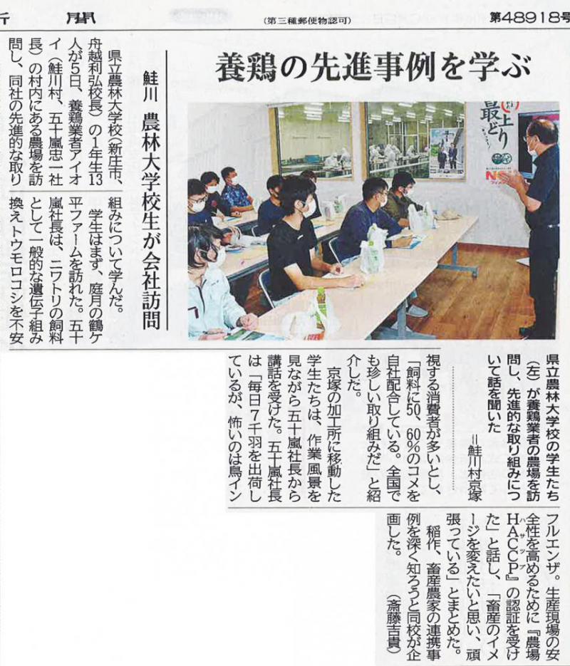 山形新聞(2021年10月9日)にて弊社の取り組みを掲載していただきました。ありがとうございます。