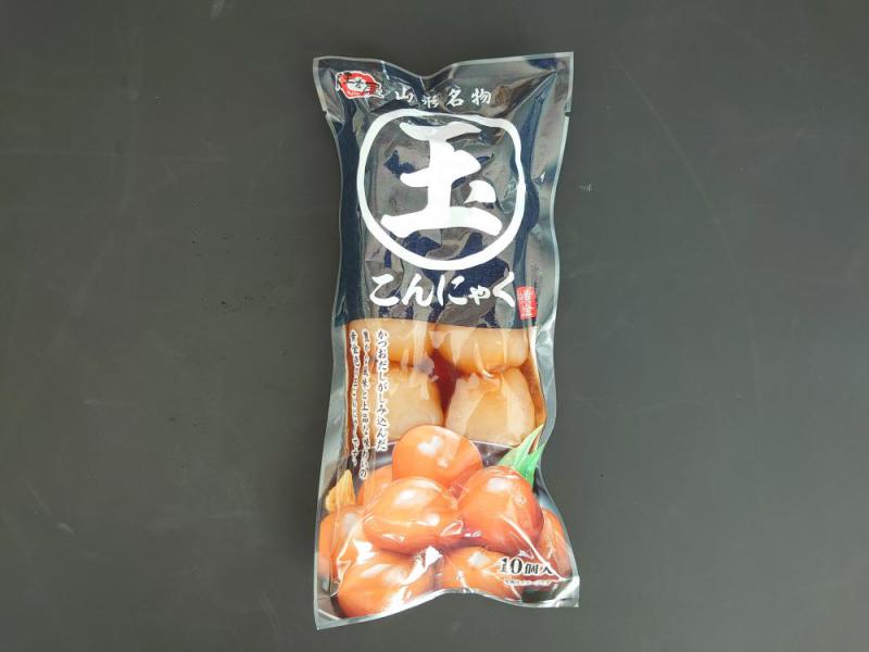 うまい! 味つき玉こんにゃく。住吉屋オリジナルたれで作った新商品です。かつおだしベースの澄んだ特性のタレは、あきの来ない味付けになっております。 山形名物「玉こんにゃく」を山形県内の醤油メーカー製造オリジナルのタレで仕上げました! 夏は冷やして良し。冬は温めて、和からしを付けてお召し上がりください。山形名物の味付玉こんにゃくです。山形県内での屋台販売だけではなく、家庭で広く一般的に食べられる郷土食です。◆アミノ酸も使用しておりません。 〈商品名〉 山形名物 味付け玉こんにゃく 〈商品名〉 味付け玉こんにゃく 〈原材料〉 こんにゃく(こんにゃく粉(国産))、しょうゆ(国内製造)、砂糖、還元水あめ、 かつお節エキス、食塩、かつお削り節、小麦発酵調味料、酢発酵調味料、昆布エキス/ 水酸化カルシウム、酒精、カラメル色素、(一部に小麦、大豆を含む)〈内容量〉 250g(個計量)〈保存方法〉 直射日光を避け冷暗所に保存してください(冷凍不可) →山形名物 味付け玉こんにゃく