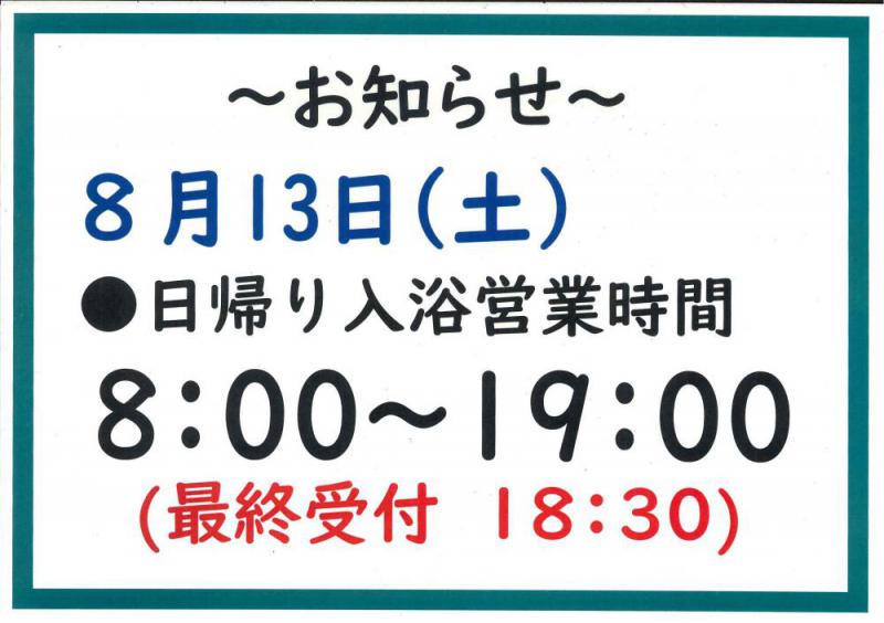 ●8月13日の営業時間