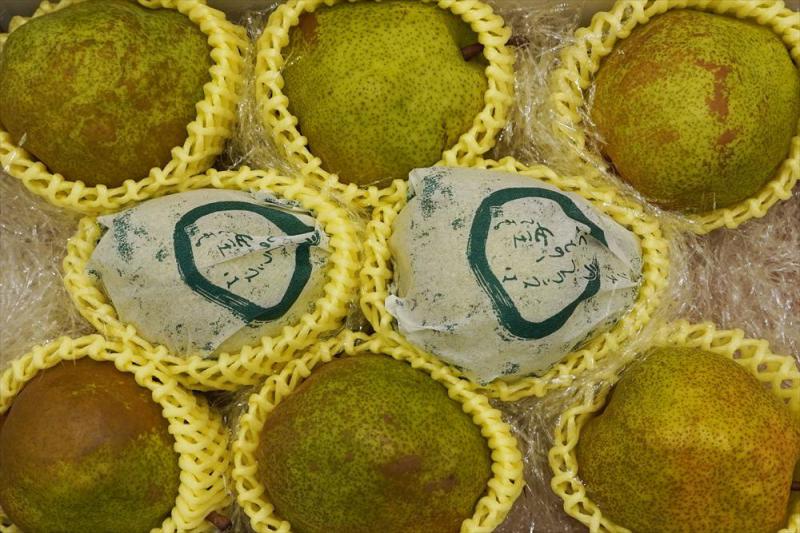 <スーパーラフ>は厳しい登録基準をクリアした園地で栽培されたラ・フランスの中から光センサーで糖度14度以上、2Lサイズ以上の果実だけが与えられた称号です。 ラ・フランス生産量の約6%しか合格しない選び抜かれた逸品なのです。 ラ・フランスは追熟が進むと、香りが一段と強くなります。軸の周りがしわしわとなってきたら、その部分を軽く指で押してみて下さい。耳たぶくらいの柔らかさになっていたら、食べ頃のサイン。冷蔵庫で1〜2時間冷やしてお召し上がり下さい。 購入ページにもどる