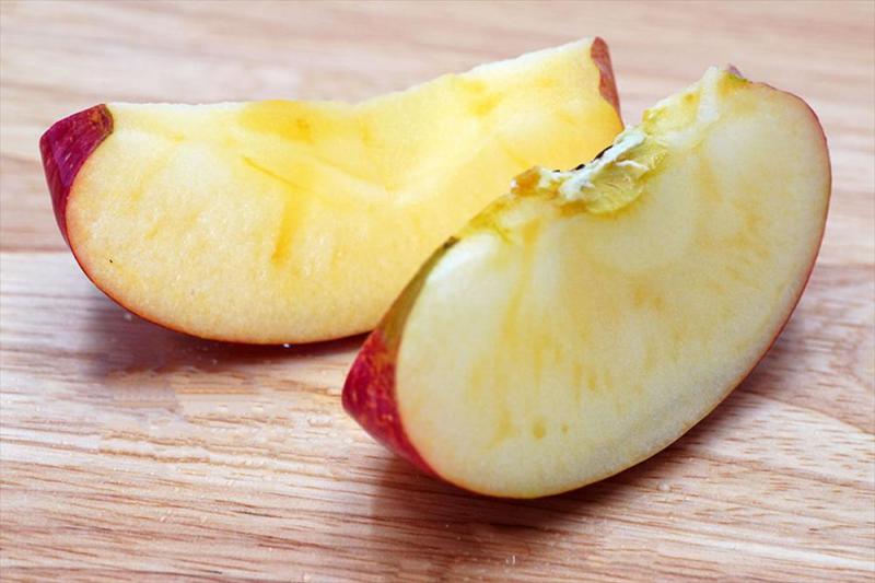 フルッティアが自信を持っておすすめする「ふじりんご」・甘さと酸味のバランス・シャキシャキした歯ごたえ・たっぷり入った蜜間違いのないおいしさです。  <ふじりんごの選び方>果皮が赤くて、お尻の部分が黄色になっているものがおすすめです。お尻が緑色のものは、やや未熟の場合があります。  りんごの季節、お客様から一番多い質問です。「蜜は入っていますか?あまいですか?」 蜜入りのりんごはいかにも甘くて美味しそうです。ところが、作り手の方にきくと・・・「蜜は甘さに関係するのではなく、コクを出す」とのこと。りんごの甘さの決め手は「夏の暑さ」だそうです。 山形は近年ずっと暑い夏が続いています。収穫間際の11月は日中な暖かく、朝晩は冷えるというりんごには理想的な日が続きました。山形の風土が育んだおいしいふじりんごをどうぞお楽しみ下さい。   りんごを保存する場合は、温度の低い冷暗所か冷蔵庫の野菜室に入れるのがおすすめです。冷蔵庫に入れる際は新聞紙に包んでポリ袋に入れるのがいいでしょう。りんごは成長を促すエチレンを発するので、他の野菜や果物の鮮度低下を早めてしまいます。 美味しいうちにお召し上がり下さい。  小サイズ20個入れです。ご自宅用にも人気です♪ 購入ページにもどる