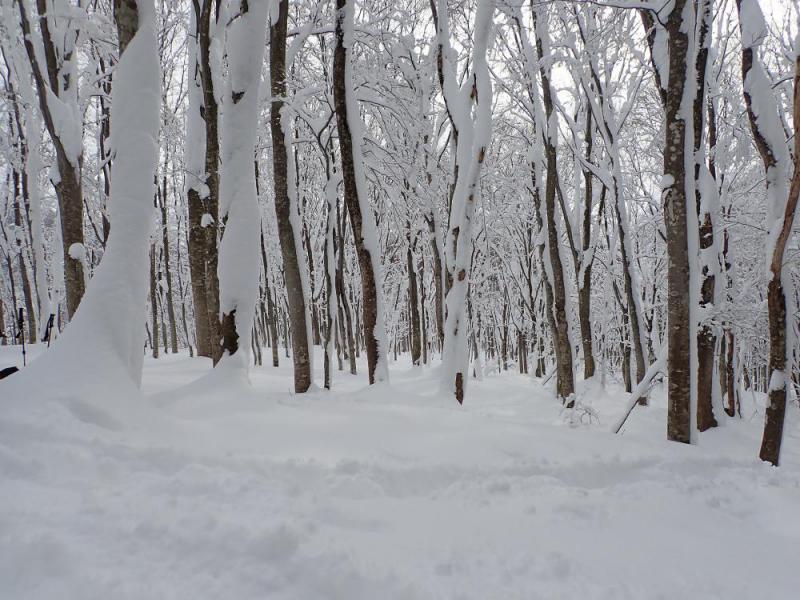 戦後75年ブナが伐採され、実生としてブナとミズナラが育つ。やや優勢のブナからミズナラが枯れ始め現在ではブナが優先樹となっている。