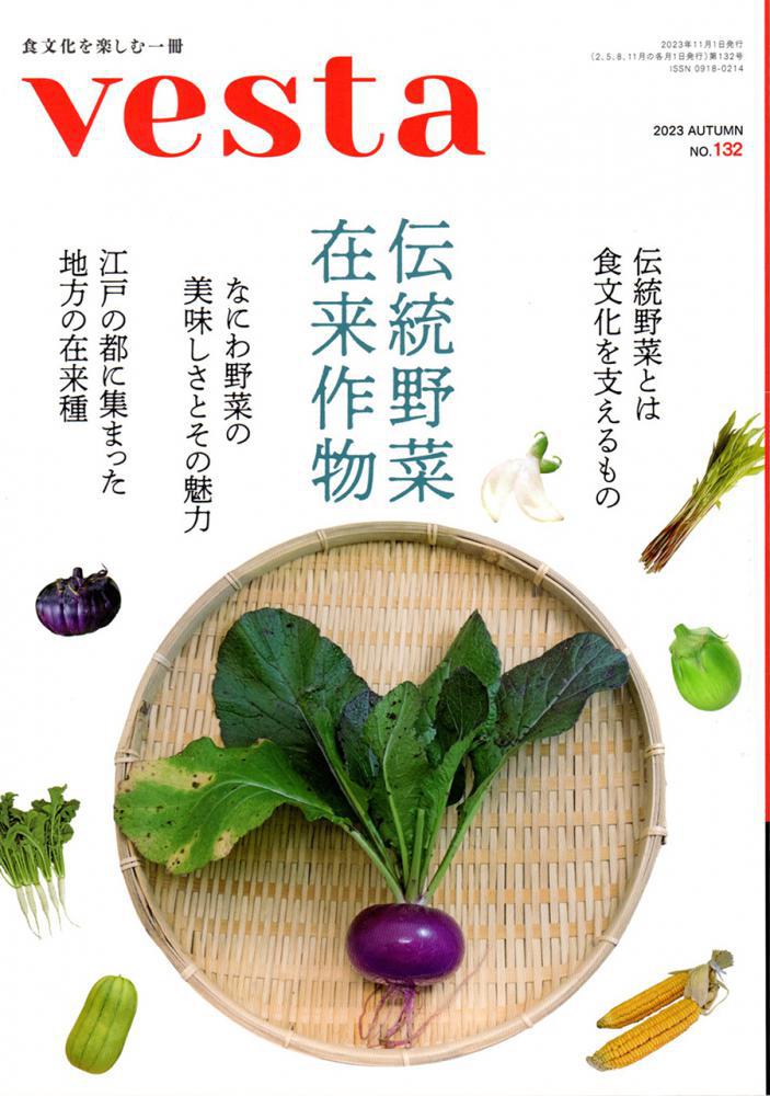 味の素食の文化センターが刊行している食文化雑誌「VESTA]の最新号(132号)の特集「伝統野菜・在来作物」のアドバイザーを務めさせていただきました。私も伝統野菜・在来作物の魅力と現状、この号は10月12日に農文協から刊行されていますが、ネットでも購入可能です。 北海道から奄美大島までの全国とグアムやイタリアの伝統野菜・在来作物とその食文化、歴史などを各地の執筆者が想いを込めて執筆し、非常に充実した号になっております。 ただし山形県の皆様には大変申し訳ないのですが、私は在来作物の現状や課題を説明する必要があったため、山形県の在来作物を紹介するページを割くことができませんでした。この点はどうかあしからずご了承ください。せめて表紙に温海かぶの写真を掲載しました。https://www.syokubunka.or.jp/publication/productions/