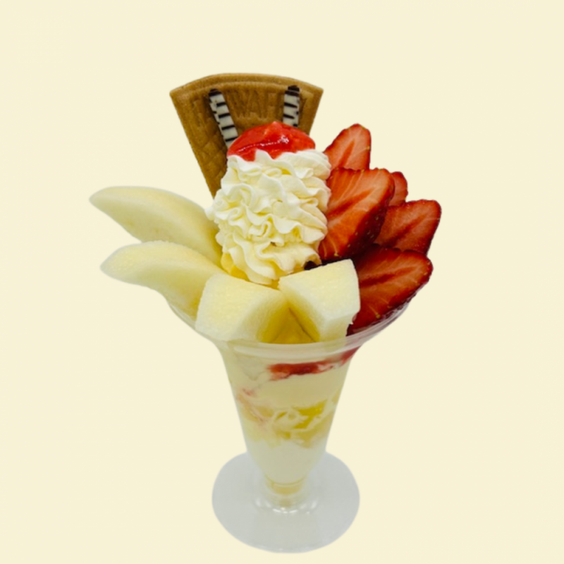 ●《山形フルーツ》いちご&ラ・フランスパフェ1,166円とろけるようなオーロラ酸味の効いた夏秋いちご今だけのコラボレーションです!