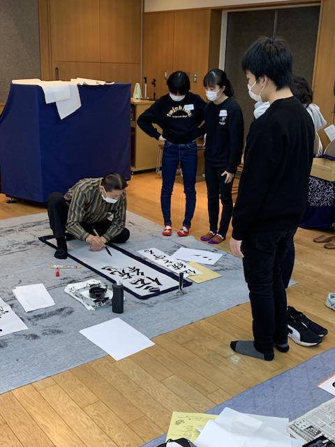 本日、赤湯公民館では「書初め練習会」をおこないました。赤湯小学校の4年生から6年生の児童が課題の文字を、書道教室の先生から教わりながら書きました。