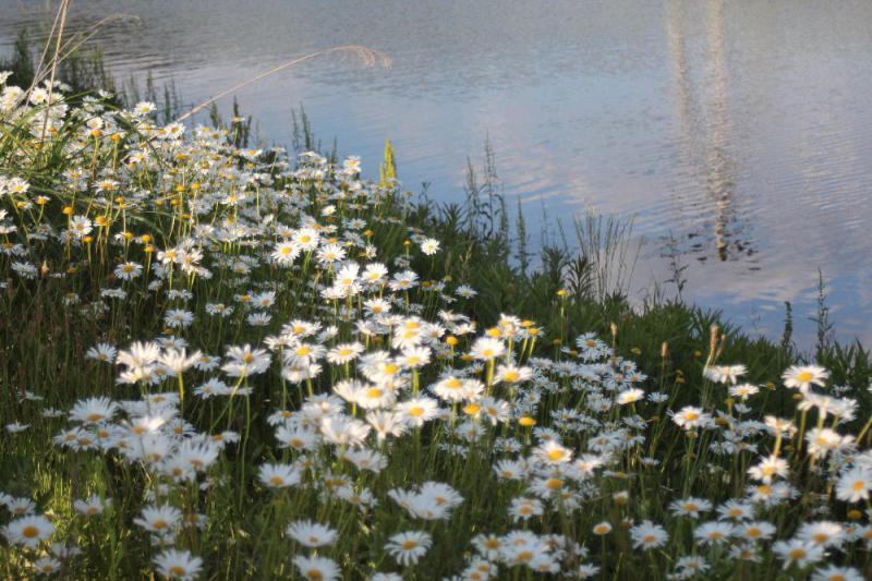 ●水面に映る青い空と白い雲はどこか絵を思わせるような写真でモネのスイレンを思い出してしまいました 「ジョチュウギク」を撮ろうとしていて思わず花の美しさだけでなく撮った一枚です