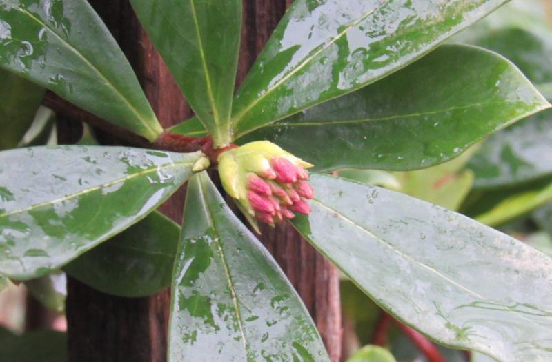 ●全く雪のない庭のジンチョウゲの花芽が薄紫色に色づいています 花が咲くのはまだ先でしょうがなんとなく花が今にも咲きそうな感じです 今年の春はいろいろな花が一斉に咲いてしまうのでしょうかしょうか