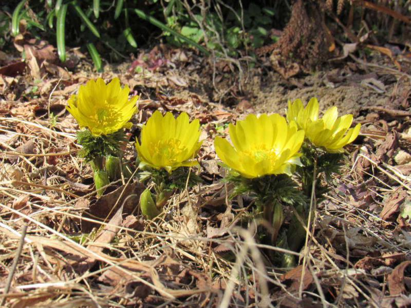●弥生3月 暦の上でも今日からいよいよ春の季節です あいにく雪もチラついていますが今日は高校の卒業式も行われるなど新しい人生への旅立ちの季節です 烏帽子山八幡宮の境内に福寿草がたくさん咲いていました 福を呼びお祝いを寿(ことほ)ぐとても縁起の良い花です 人生の新たな旅立ちのスタート台に立つ若者に幸多からんことをお祈りします