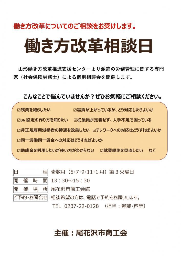●尾花沢市商工会 働き方改革相談日開設のお知らせ
