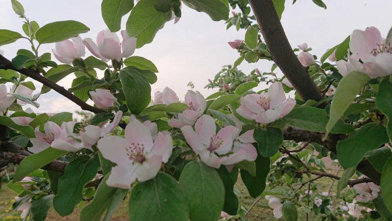 ●5センチほどの大きさの5枚のピンクの花びらをつけた「カリン」を散歩の途中でみつけました 秋になると香りのよい果実が実り芳香剤のの代わりになるほどいい香りがします 寒さに強く東北地方では人気があり庭木としても植えられているようです 「かりん」という名前が「借りぬ」に似ていることから 借金をしないですむという願いを込めて庭に植える習慣がある地域もあるそうです 面白いですね