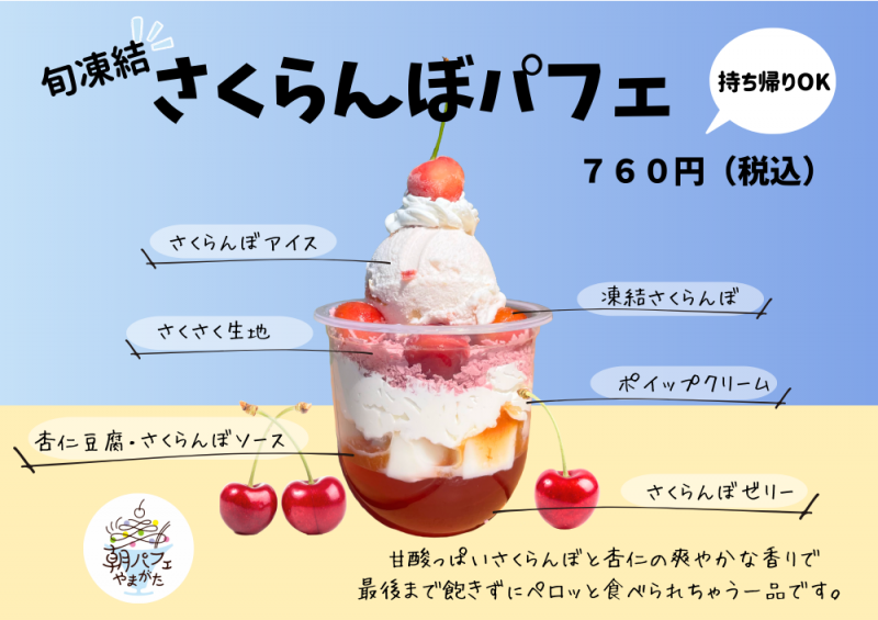 今年も朝パフェの販売を始めました!販売時間:10時〜12時さくらんぼ最盛期(6月中旬ころ)は、冷凍さくらんぼではなく、とれたての旬のさくらんぼを添えてご提供します!