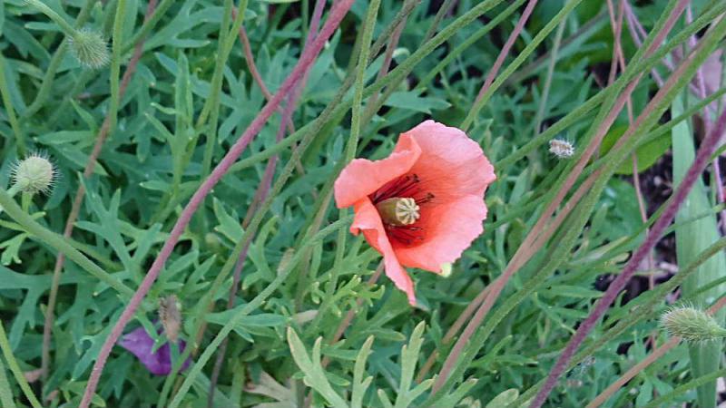 ●淡いオレンジ色で4枚の花びらをもつ「ナガミヒナゲシ」を知人の畑で見つけました 1つの実に1600粒ほどの種子が入っており繁殖力が高い植物だそうです 国の駆除対象となる「特定外来生物」や「生態系被害防止外来種」ではないが他の植物の成長を妨げる成分を含んだ物質を根から出すので生態系等に影響を与える植物なんだそうです「駆除にご協力ください」と駆除の方法や注意点も示されています でもとても可愛い花です