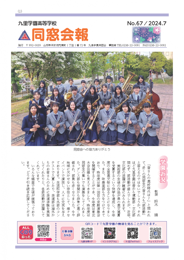同窓会報67号をお届けします。ダウンロードしてご覧になることもできます。