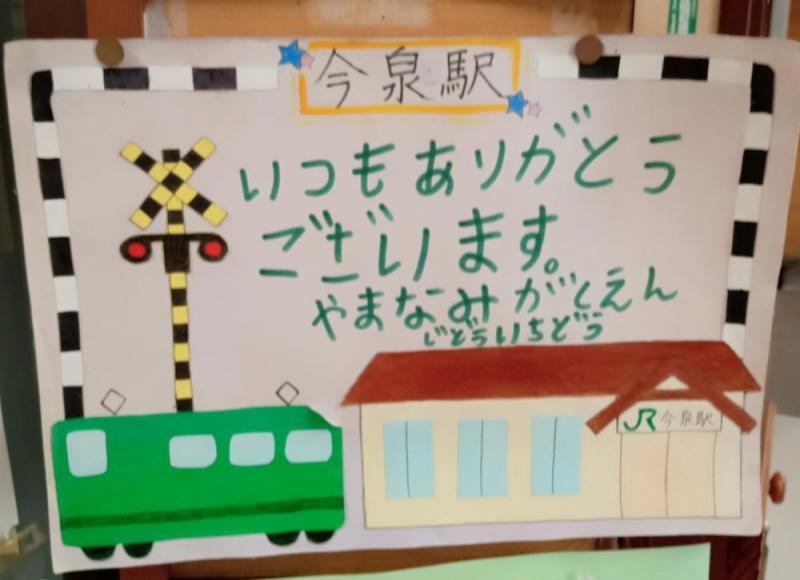 所用のついでに今泉駅に行って来た。カーテンが閉められた事務室の窓に、地元の児童生徒からのメッセージが貼られていた。写真のように今泉駅舎と米坂線の車両が描かれたものやフラワーライナーが描かれたものもある。こうした小さな展示がマスコミに取り上げられることは少ないように思われる。またこの作品を受け取ったJR職員はどんなことを思ったのだろうか。そしてそのことは会社の上部の方に伝えられたのであろうか、と思った。 さて長井線祭りは10月20日(日)に行われる。今年は今泉駅から長井駅まで、米坂線のJR列車による乗車体験も行われるという。長井線には、駅に子どもの姿を見つけると、その姿が見えなくなるまで手を振って応える若い車掌さんがいる。その姿を見るとローカル線にとって最も大事なものがそこにあるように思える。 長井線祭りを山形鉄道の会社と社員、そして行政と住民の在り方を考える機会にして欲しいと思う。長井線祭りの時には最寄りの駅に出かけて欲しい。そしてフラワー号の乗客に手を振ってあげて欲しい。米坂線の状況を対岸の火事にしてはいけないと思うから。