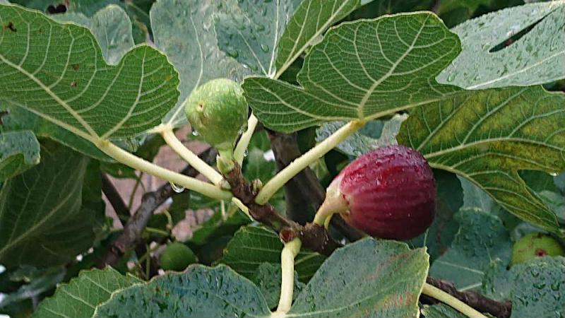 ●加入している(年甲斐もなくアブラ子ですが)スポーツクラブのメンバーの一人が「イチジク」の甘露煮を持参しごちそうになりました 甘さや食感などとても美味しくいただきました 翌日散歩していると雨に濡れた「イチジク」の実を見つけました 花を咲かせず実をつけるようにみえるので「無花果」と中国で名付けられた漢語なんだそうです 実際は花を入れた多肉質の袋である花嚢といわれるところに花がたくさん入っていてそれが実になるのだそうです ですから花は見れないのです 秋になると熟して濃い紫色になり収穫することができるのです それが甘露煮になっていただいたというわけです