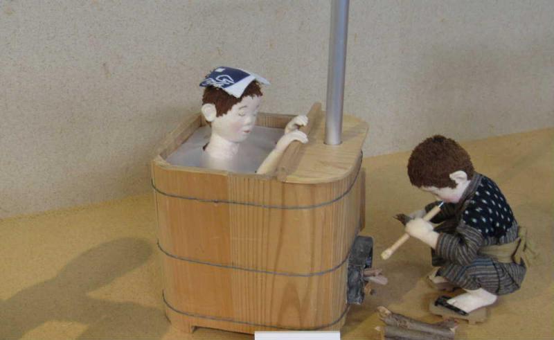 ●すっかり涼しくなりお風呂が気持ちよい季節になりました 今はボタン一つでお風呂が沸きますが幼い頃には風呂を汲み薪で風呂を沸かすのが子ども達の仕事の一つでした 先日紹介した今福進さんの紙人形に風呂焚きをしている子ども達の人形を見ることができました 懐かしいですねえ