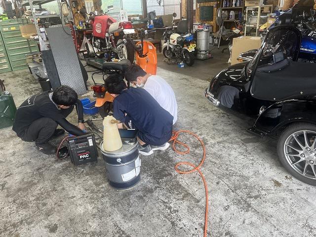 たと思ったら毎日雨が続いております。早く涼しくなってほしいと思っていましたが、この感じはなんか嫌です。この前、職場体験で中学生がやってきました。処分してもいいようなチョイノリを題材にメカニック君のとても分かりやすい説明で、有意義な職場体験だったんではないでしょうか。いつか何かに役立てば嬉しいですよね。エンデューロレースに参戦しているお客さんに頼まれてメンテナンスついでにチューブの代わりにタイヤムースを挿入。専用のチェンジャー持ってないので何気に大変な作業穴の開け方で硬さ調整しているんですね。1日180キロくらい走るとか言ってたような気がしましたがオフロード、ましてやレースでその距離はかなりきついですよね。確かにパンクしたら洒落にならないですしタイヤムース挿入は正解ですね。そして段々と冬物の話も出始めてこなしていけるように段取りしないとですね。