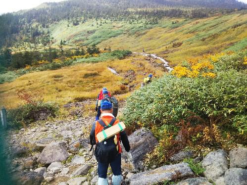 昨日、西吾妻山案内人クラブの木歩道滑り止め処置作業に参加、ちょうど紅葉がどのくらい進んでるのか、自分の目で確認できるので良かったですね・26日は磐梯山登ってきてました・・そこは1816m、西吾妻だと第三リフト降り場1820mと同じくらいのところ・・先週はどちらもまだ早い感じでしたが、西吾妻北望台1820mも紅葉が降りて始まりましたが、その上カモシカ展望台や人形石、西吾妻山頂あたりは紅葉がいい感じになってましたさすが2000m級のところですね・・もう日々変わっていきますから・・来週は第三リフト付近1700m〜1800m付近が見ごろになりますね・・