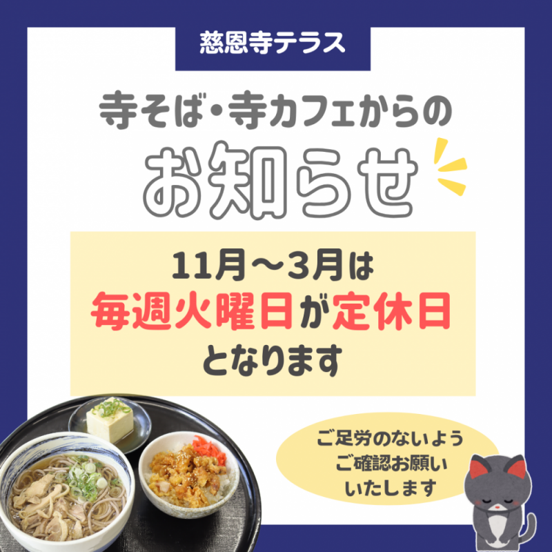 ●寺そば・寺カフェ定休日変更のお知らせ