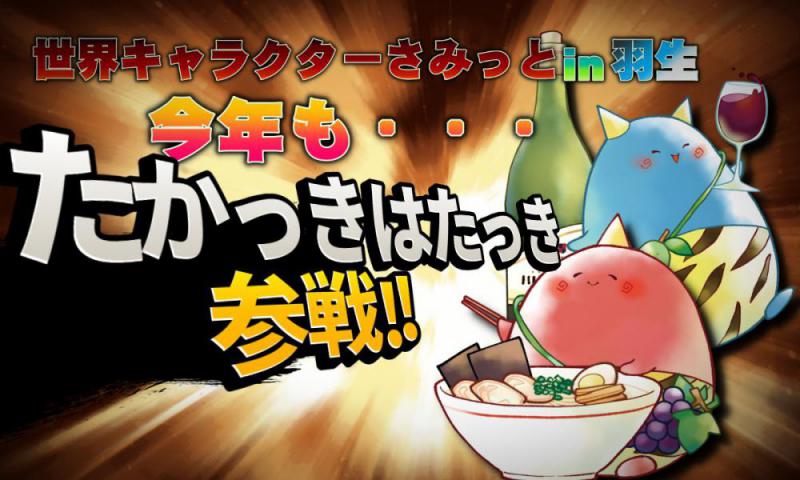 全国からご当地キャラクターが大集結する「世界キャラクターさみっとin羽生」埼玉県羽生市で毎年開催されており、今回は第13回目となります。山形県高畠町の公式キャラクターたかっき はたっき も参加します!ぬいぐるみやクリアファイル、エコバックなどキャラクターグッズも沢山ご用意しますよー!キャラクターたちが踊るステージや物販、ご当地の美味しいものがたくさんのグルメコーナーもあります詳細はこちらから第13回 世界キャラクターさみっとin羽生■日時:令和6年11月23日(土)・24日(日)10:00〜15:00■会場:上川崎公園・イオンモール羽生西側駐車場(埼玉県羽生市川崎2丁目281−3)■内容:全国のご当地キャラクターによるステージや地元PRブースの出展■主催:世界キャラクターさみっとin羽生実行委員会 / 羽生市