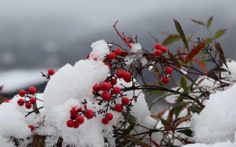 ●今朝はぼた雪と呼ばれる4、5センチはあろうかと思われる大きな湯が降っています 師走も半ばとなりいよいよ本格的な冬が到来しました 師走を彩る花の一つに「ナンテン」があります 隣の家の庭に真っ赤な「ナンテン」の実が輝くように実り雪を被っている姿を写真に撮らせてもらいました 正月に飾る縁起のよい木ですが雪囲いされてしまいその囲いからはみ出しているナンテンがかわいそうなくらいです