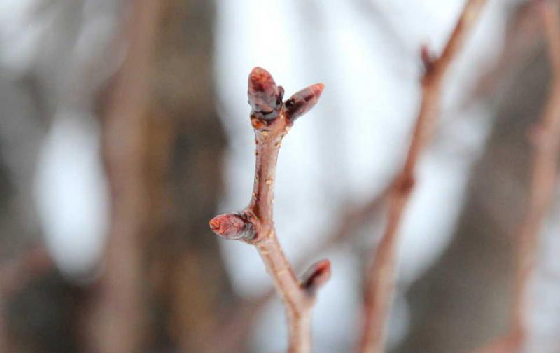 ●朝からチラチラと雪が舞っていますが今朝の写真はまだまだ固い桜の冬芽です 散歩に出かけ道路そばの桜の冬芽が寒そうに肩をすぼめているようです これから冬を迎えるのでまだまだ固く閉じていますが芽の中では少〜しずつ動いているのでしょうか 今日から来週始めにかけてまた雪が降りそうです 桜の冬芽も一休みです