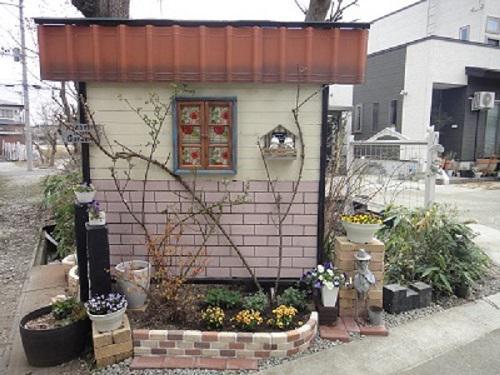 2019年、ブログを始めた時に紹介した工作物ですが2018年は色んな所を作り変えた年でじーじもまだ若く庭づくり楽しんでいましたね。 ============================= 2019.02.21ブログより 2018年ガーデン工作物紹介!!2018年は、いろいろ作った年です。(トップ写真)は・・・大雪だった年にかかわらず、3月そうそう開始。入り口のフェイクハウスは、冬の間に時間をかけて設計今までにない大物の工作物ですね。。力作のフェイクハウス(裏側は何もない平面の構造物)が完成!!ちなみに裏は、池庭になっています。。材料はネット注文(木材は材質指定)3月18日に工作着手、ペンキ塗りは、3日ぐらいで…ピンク色のレンガ模様壁のラインは、手書きで細かい。 ↓入り口のフェイクハウスに次ぐ工作物!!裏庭にフェイクドアを設置(西側の区切り)配色は2人で検討し、イメージ作る。ブルーグレイ、グリーン、白、ピンクで庭全体のカラーにする事に・・・ ↓ガーデンファニチャーの再塗装ライトピンクでやわらかい雰囲気〜〜  ↓パーゴラに棚を取り付け、小物がおけるように。色もブルーグレイに塗り替えた。テーブルもライトピンクに塗り替えて・・・  ↓ラダー工作(残材で作る)。。  色もポイントに! ↓古木(栗の枯木)のまわりを整備!!古木には、モンタナ、ハニーサックルが絡まり、楽しませてくれる。ここにも残材でラダーを作り、色のポイントに!!この色は、庭の緑に映える・・・  ↓裏庭のアプローチ整備(雑草対策)!!植栽も撤去しスッキリと・・・  メインガーデン!!周りのバラたちも大きくなり、いい雰囲気に。。ポイントにブルーのポールなどを入れて、いい感じ  ↓物置改造(バラは、ポールズヒマラヤンムスク)(昔から使っていた物置、扉は合板で作っていた)杉材を購入、金具もおしゃれに。古い棚のため歪みがあり、じーじは苦労したようだ?手前の小道(池の間)にしている所は、材料をコメリから購入し、ばーばが手掛けた。このエリアも気になっていたので満足〜   ↓9月〜ばーば裏庭に、新たな小道を!!ここの資材もコメリより購入。。  2018年は、色んな所を作り変えて力が入った年!今年は、ゆっくり楽しもうかな(^_^)========================= もう6年前なので、メンテしながら維持しています。