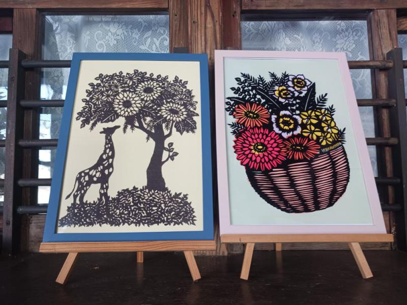 待合室のミニギャラリーでは、切り絵の作品が展示されています。この作品は、仙台市在住の桑原重雄さんの作品です。桑原さんの姪っ子さんが羽前成田駅が好きで時々足を運んでいることを知り、駅を訪れた人にも喜んでもらえたらと、姪っ子さんをとおして提供していただいたものです。 切り絵をじっくり見るのは初めてのことですが、版画とも違って何とも言えないものを感じます。飾りつけの際にたまたま駅においでになった方も、「うわーきれい!」と感動していました。待合室でのひと時、じっくりとアートな気分を味わってみて下さい。なお展示する作品は、随時変更されますことをご了承ください。