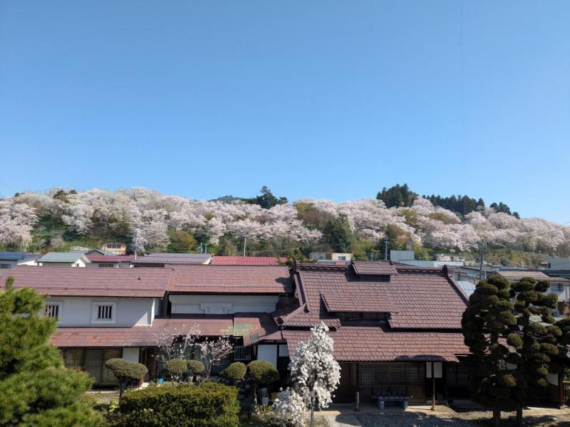 桜が咲き始めてからというもの記念館2階から撮る写真は、花曇りの空が多かったのですが、今日は思わずうきうきするような青空を背に写真を撮ることができました。空の青さに溶け込むことなく桜の淡い色が引き立ちますね。夕方まで晴れるようなので、どうぞお花見楽しんでくださいね。臨雲文庫前の枝垂れ桜もすっかり満開です。ぽってりとした花の付き具合をぜひご覧にいらしゃってください。お待ちしております。 赤湯温泉桜まつりが開催中です。期間中は夜間ライトアップも行われます。桜の開花状況や駐車場、各種イベント情報など詳しくは、下記をご参考ください。烏帽子山八幡宮様のX(旧Twitter)https://x.com/eboshiyama8南陽市HP http://www.city.nanyo.yamagata.jp/kankoibento/241南陽市観光協会 https://nanyoshi-kanko.jp/ 企画展「ふるさとの節句」は5月6日までとなっております。ぜひご覧ください。※記念館の開館時間は午前9時〜16時30分(入館受付は16時まで)入館無料・月曜休館 お問い合わせは 電話0238−43−6802まで