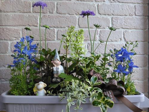 先日、母の日のプレゼントに長男夫婦から寄せ植えを頂きました。いつも花ショップポピーさんに手配してくれています。今年は、鉢でなくプランターへの寄せ植えでした。長く楽しめるようにと宿根草をメインにしてみましたとのことです。色合いが落ち着いたものばかりなので先日購入したピックを追加したら、可愛らしくなりました。 ↓先日、花ショップポピーさんから購入 可愛らしくお手頃価格だったので在庫3本全部ゲット〜♪この一本を入れて見ました! いつもの気まぐれ、勧められて一緒に購入〜♪“リビングストーンデージー”この優しいアプリコットの色がとても素敵でお持ち帰り〜♪実は、かご売り場にあったもので籠を進められたのですが一緒に入っていたお花の色合いに魅かれて購入してしまいました(^^♪ 今年、初めて購入したのですが〜”レウイシア”花色も豊富で冬越しも大丈夫ですよと勧められ、お手頃価格だったので花友さんへのプレゼント用も合わせてゲット〜!それぞれ、素敵な色ですね。来年まで元気に育てられるかな?暑さが苦手みたいなので夏注意ですね。 自宅用に… 花友Sちゃんへ…元気が出るビタミンカラーを〜♪ 花友Kちゃんへ…好きな色を選んでもらいました〜♪ 今年は、庭の花の開花もだいぶ遅れていますね。気持ちものんびりと、ようやく鉢植えが終わってこれからはミニガーデンと多肉植物〜あまりのんびりしていると暑い夏になってしまいそうです じーじは、ただいまデッキを製作中!フェンス製作も残っているのですが。 じーじとばーばのスローライフ大丈夫かな?今年はオープンガーデンも遅くなりそうなのでのんびりとデス(^^)