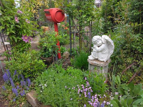 今日は朝から、小雨…午前中は9時ごろには予報通り、”雨と強風”今日の庭仕事は様子見ながらで思うように進みません。瞬間的に風も強く倒れた”バラ鉢”もありました。 晴れ間を見て今日の庭を撮ってみました。開花した花も少しづつ、増えて来て雨上がりなので、新緑もきれいに見えます。 ↓昨日とはちょっとちがう位置で…変わりないような感じもしますが赤が入ると違いますよね。 南のエリアでパーゴラの東側です。 アジュガが、長い期間咲いてくれています。 ↓一番きれいな所をアップで〜!手前の”メリテス・メリソフィルム”が可愛らしく♪ ↓わが庭のメインのガーデンになった”ロックガーデン”じーじのエリアです! 庭は全部じーじ担当ですが、ここは特にこだわった場所です。 去年一番目立った新人花『ベルケア』パープレアですが、越冬してくれて新しい株が成長しています。(あひるの手前) 去年『ユーフォルビア』を中心とした植栽を始めました!特に品種にこだわったエリアになっています。 今日もクレマチス開花〜! ↓色が変化していく珍しい”火炎” ここ当分はクレマチスを追いかける毎日になります。そしてキャットミントが咲き始めると本格的なガーデン幕開けとなります。