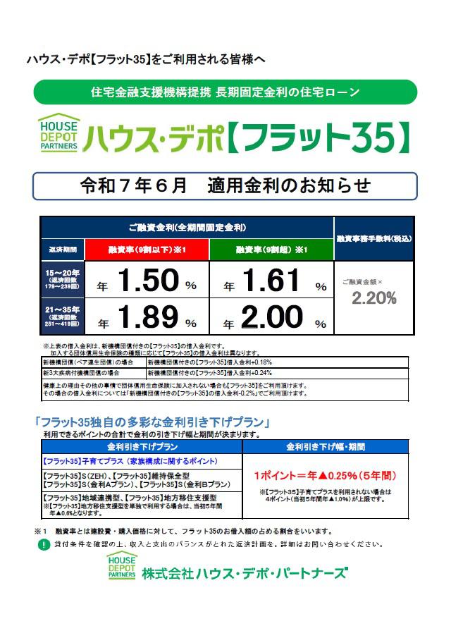 ハウス・デポ【フラット35】の2025年6月の金利情報です。