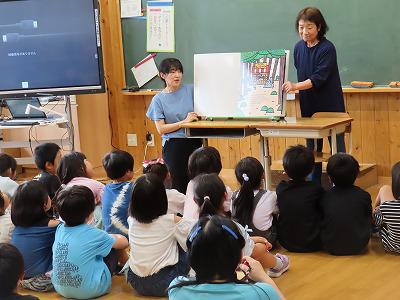 今日は1.2年生の読み聞かせ。4〜6年のバランスボール学習といろいろな授業の一コマの紹介わかばでは、パソコンで紙飛行機の折り方を学び実際に飛ばす学習をしていました。見事にまっすぐに飛びました!そのあと、羽ばたく飛行機も作って見せてくれました!ひだまりでは、算数の学習と国語の学習です。マンツーマンでしっかりと学習を進めていました。5年生は算数の学習。1よりも小さい数でわったら商はどうなるのかを確かめる学習でした。めあてからどうまとめにつなげばよいのか、子供たちの思考に沿った学習が進められていました。ノートがきれいにとられています。このあと、練習問題を行いました。6年生は家庭科で野菜炒めとスクランブルエッグを作る授業をしていました。調理実習は家庭科の中でもすごく楽しい学習です。各班協力し合いながら調理を進めました。職員室にもスクランブルエッグをいただきました。おいしかったです。ありがとう。バランスボールの学習です。今日は4〜6年生まで 指導をいただきました。