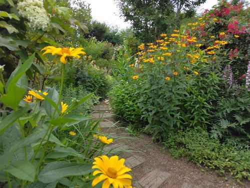 今日も暑かった!!長井の最高気温も33℃でした…それでも、午前中はエアコンなしで過ごせましたが熱中症に注意ですね 今日の庭は、いかがですか? (トップ写真)は、我庭ではないような風景…バラ庭は、どこへ・・・? ↓すっかりイエローガーデンですが。 ヘリオプシスの手前には"オカトラノオ"が陣取っています!このエリアには"チーゼルフロナム"もすごい勢いで成長していますが、次回に・・・ ロックガーデンエリアの"ベルケア"たくさんの花が。トゲの葉でどんな花?咲くまでが楽しみだったかな… ↓同じくロックガーデンに咲いているとんがり帽子のような"クニフォフィア"(トリトマ)ようやく開花、株もふえ大きく成長しています。 ↓倒れたままの”ルドベキア”ですが自然のままに…庭には、黄色い花が至る所に・・・名前覚えられないばーばデス。 もうグラスの季節です。ロックガーデンの方を見て撮っています。 ルドベキア”キャラメルミックス”今年は早く咲きました。ちょっと変わったとても素敵な色合いです。 ”ポットマム”届きました〜!これから春の花が終わった所に交替デス。