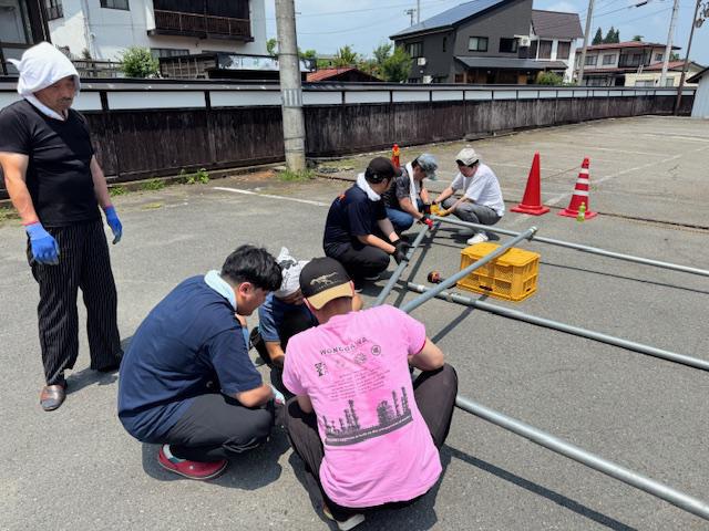 週末のほたるまつりイベント日に向けて、イベントステージの準備をはじめました。手作り感満載のおまつり、なんとこのステージも手作りなのです。そのため、みんなで一生懸命つくる。時間はかかりながらも今年も良い感じにできました。週末は天気予報もいいみたいだし、楽しみです〜