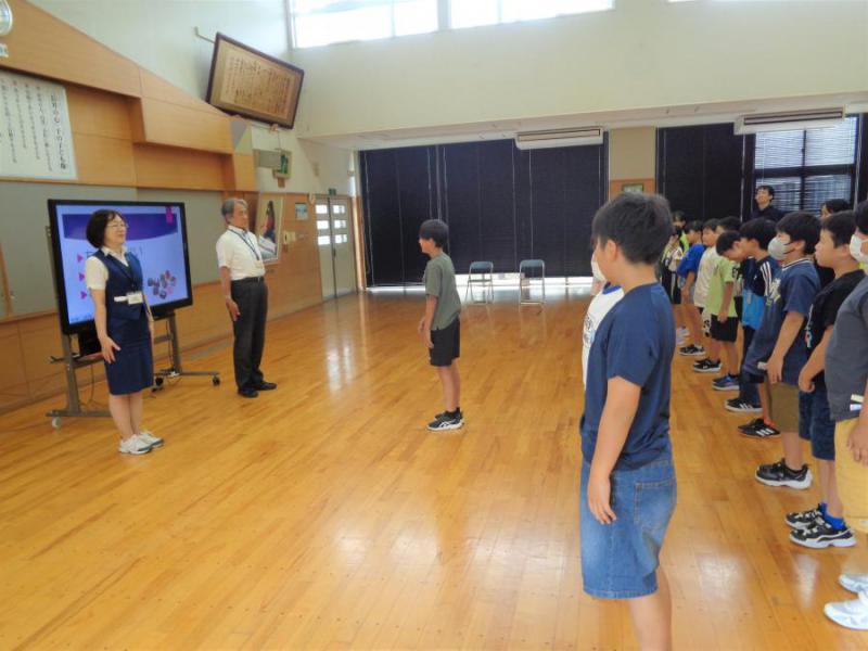 今日は、置賜教育事務所と少年サポートセンター置賜より講師の先生をお招きして不審者対応訓練を行いました。1〜3年と4〜6年に分かれての実施です。まずは、「どんな人を不審者というの?」を考えたり、もしもの場合の「いかのおすし」の行動を確認したりしました。それぞれの後半では、講師の方が不審者役になり、代表児童が声掛けへの対応を実演しました。こうしたことに楽しく真剣に取り組めるところが致芳っ子のよいところ。代表児童の皆さんは、とても上手に対応することができました。全国的には心配なニュースが時々流れてきます。絶対にないことを願いますが、大切な自分の命をしっかり守れるよう毎年の訓練を大事にしていきます。なお、放課後には学童の先生方も交えて、不審者が校舎内に侵入してきた際の対応の訓練を行います。「さすまた」等を使っての実演も行います。本気の訓練が、いざというときの勇気と力になるはずです。先生方もしっかり学びます。