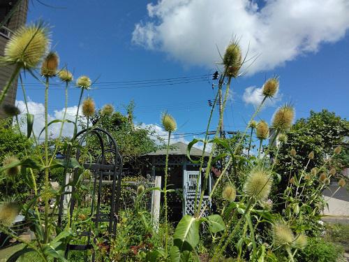 昨日13日は『迎え盆』、天気予報では早くから暑くなるようなのでお墓参りを早くにと思っていたのですが…9時前には陽射しが強く暑くなって来ました。老犬サスケも日増しに認知症が進んできて、脚も衰え目もほとんど見えなく、吠えも強くなってきて家を空けれない状態になって来ました。 お墓参りを、早く済ませたかったので無視して行って来ました。(何とか大丈夫でした)今年は、ちょっと暑かったですが、まだ人もまばらでじーじとふたりでの静かなお参りでした。 帰ってから庭をぐる〜と。青空コラボで、久しぶりの爽やかな空…! (トップ写真)の”チーゼルフロナム”はもう種の状態、今まで風景を何回か撮ってるのですが、こんなにきれいな青空コラボは初めて!次回は、チーゼル特集で紹介したいと思います。写真だけはたくさん撮ってあるので・・・ お盆の花と言えば”ミソハギ”ですが、今年は、まだ開花始まったばかりです。 ↓前回UPした”シュウメイギク(アネモネ)”も沢山咲き始めています。今はここだけですが、もう少し増やしたいですね。 ↓年に二度開花する“アメリカフジ”二度目の開花です。今年は遅く花数も少ないです。 ↓今年UP出来ずにいた”アメリカフジ"5/24曇り空できれいに撮れず・・・ ↓5/28青空でしたが、アングルがイマイチ…そのまま残っていました。 昨日は、娘家族が夕方お盆礼に来てくれました。菓子箱には、こんな可愛らしい「練り切り」が入っていました。孫たちの成長、早いですね。3姉妹にぎやかです!