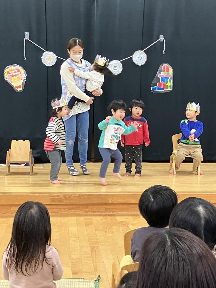 4月生まれの誕生会を行いました。新しい年度になり初めての誕生会。ドキドキ、わくわくしていた誕生児のお友だちでしたが、インタビューに答えたり、リズム運動や縄跳び、制作など得意なことを発表したりして、みんなから『おめでとう』とお祝いしてもらい、素敵な会になりました。7名のお友だち、誕生日おめでとうございます!!