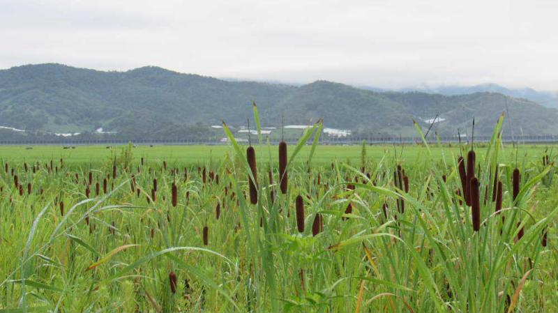 ●田んぼの稲穂が少し黄色味を帯び実りの秋を迎えようとしています 田んぼのそばの湿地にガマの茶色の穂がいくつも伸びていました 間もなく「ガマ」の穂綿が白くはじけるように飛び出してきます
