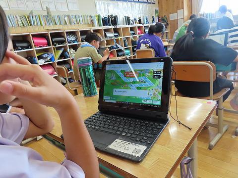 4年生の教室にいってみると、PCで社会科の学習での観光地クイズすごろくみたいなものをやっている児童がいました。3人グループをネット上で編成して、東京地区をめぐっていました。8/28より東北文教大学より本校卒業生の嶋貫さんが、スクールサポーターとして2週間の体験学習に来てくださっています。5年生の英語では、子どもたちとの対話を手伝ってくれています。休み時間などもいろいろな子どもたち遊んでくれています。