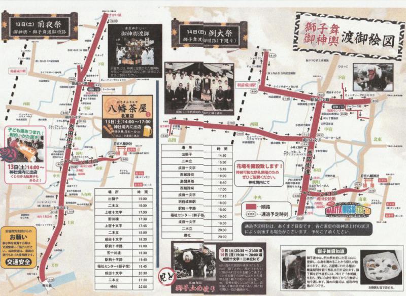 9月に入って、各地区で秋の例大祭が行われます。今週の土、日は隣の五十川地区。そして来週の13日(土)、14日(日)は成田八幡神社の御神輿・獅子舞の渡御が行われます。成田駅には14日の午後6時頃に到着予定です。 やっぱり故郷の祭りはいいもんです。今年は3連休なので、帰省する方も多いのではないでしょうか。山形鉄道においでになられた方も、村祭りの雰囲気を味わってみては如何でしょうか。成田駅前で、おらだの会のメンバーと共にご信心(獅子によるお祓い)を体験してみては如何でしょうか。 獅子祭りの様子はこちらからどうぞ → ご信心!!:山形鉄道 おらだの会 → デデンコデンデン、お獅子様がやって来る:おらだの会【おらだの会】 駅茶での公開事業(写真展)は1週間のお休みをいただき、12日(金)からスタートします。今回は米坂線復興への応援も含めて、『米坂線の今 今泉〜小国』と題して米屋こうじさんとの共同企画展となります。どうぞお楽しみに。
