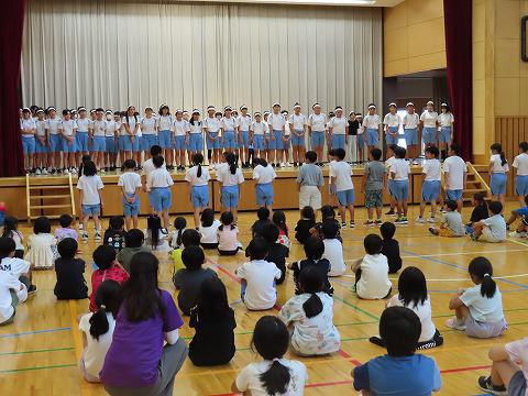 今日は明日の町陸上大会の壮行式がありました。4年以下が励ましの言葉や応援をします。明日の大会では、5・6年生全員が100М走に出場 リレーでは男女リレーと混合にABチームで出場します。明日の陸上大会のがんばりを期待しています。2年生が居住地交流で、新聞紙を使っていろいろなものをつくる学習を楽しんでいました。お友達とパチリ!アサガオのおし花をつかってしおりづくりをしていました。みんな上手に色付けしていました。職員室のDX化の一つとして、一日の動きがわかるように2日分わかる掲示板がホワイトボードからパソコン連動のディスプレイに代わりました。ディスプレイは後援会で購入させていただきました。ありがとうございました。