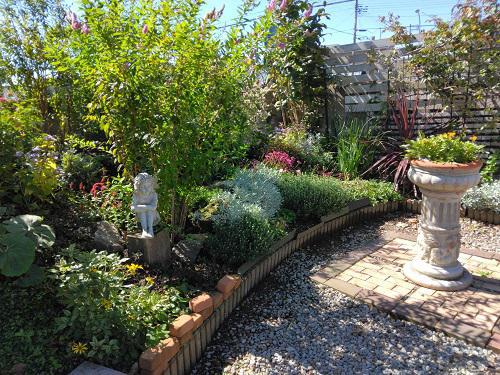 今朝は雨、昨日から降り続きましたが、ようやく日が差してきて、じーじも庭仕事始めました〜9月最後の日は、お天気も良くて洗濯日和で庭の秋らしい風景も撮ることが出来ました。 いつも、ブログ用に写真を取り込むのですがパソコンをつけたまま、一日があっという間に終わってしまう日々です。昨日の午後からは認知症の老犬サスケの対応で夜にはくたくた、薬も増えてきて大変になって来ました。病院の先生からは、夜泣きはとにかく寝せること!今は薬でほとんど寝た状態のサスケです。  さて、庭の風景は・・・今年じーじが手を加えたロックガーデンを撮ってみました〜♪ありふれた風景ですが、撮り方で素敵に見えますね。いつものスマホなのでこんな程度ですが、自分で和んでいます。(自画自賛デス^^) ↓ガーデンマムも、ようやく開き始め色づいてきました。   ↓シルバーの”モクビャッコウ”と”ガイラルディアグレープセンセーション”の色合いが秋の庭らしさをみせてくれてます。このガイラルディアは、地を這うように咲くのでロックガーデンのような場所にはうってつけです。   ↓何気なく購入したもので、名前も分からないのですが成長して、いい役目をしています。剪定すると、何回か楽しめるのがいいです。    ↓手前の鉢植”オステオスペルマム”切り戻し後の開花です。   ↓男の子のエリアのマグも色づいてきました。   庭は秋に重点を置いたつくりをしているのでこれからもまだまだ楽しめます。持続可能な庭づくりを目指しているのですがその前に管理人がいなくなってしまいますね。(笑い…)