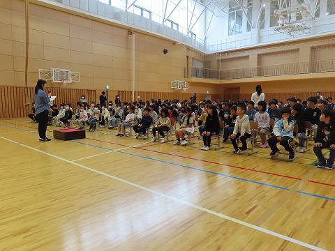 今日は昼休み終了後 ピアノの楠先生をお願いし、全校合唱の練習をしました。席の移動も含めての最終練習でした。