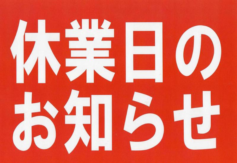 ●R7年12月の休業日のお知らせ