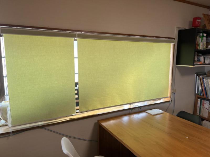 みなさんこんにちは先日、事務所の打合せ室にロールスクリーンを取り付けました。経緯としましては、朝日がまぶしいため取付ました。