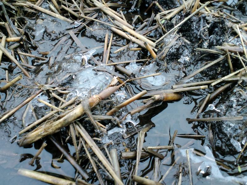 田んぼに張った氷も融けない状態で〜