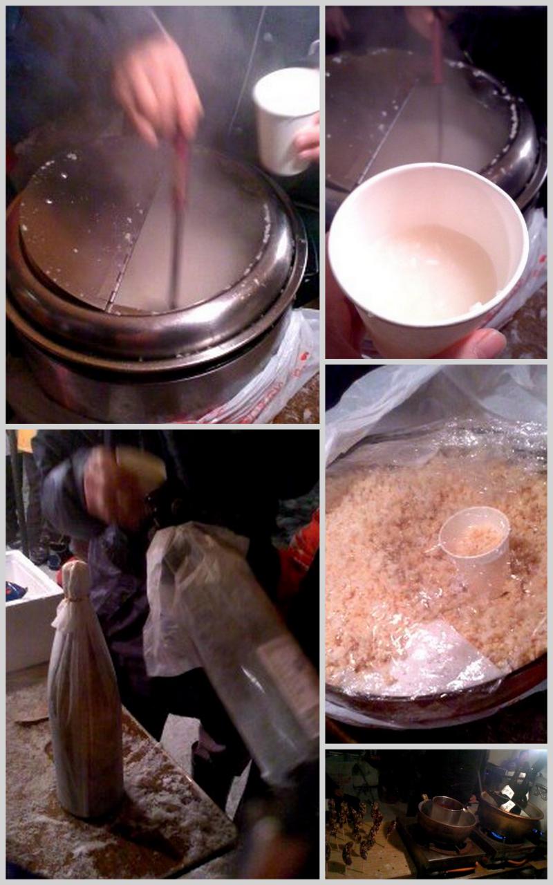 さて、お柴灯まつりの本部テントでは、あべ旅館の女将さんお手製の甘酒とあられのふるまいがあります。
