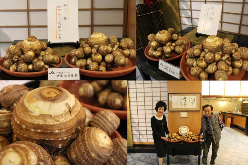 この三代飾り芋は新潟の五泉の「帛乙女(きぬおとめ)」という品種の里芋です。