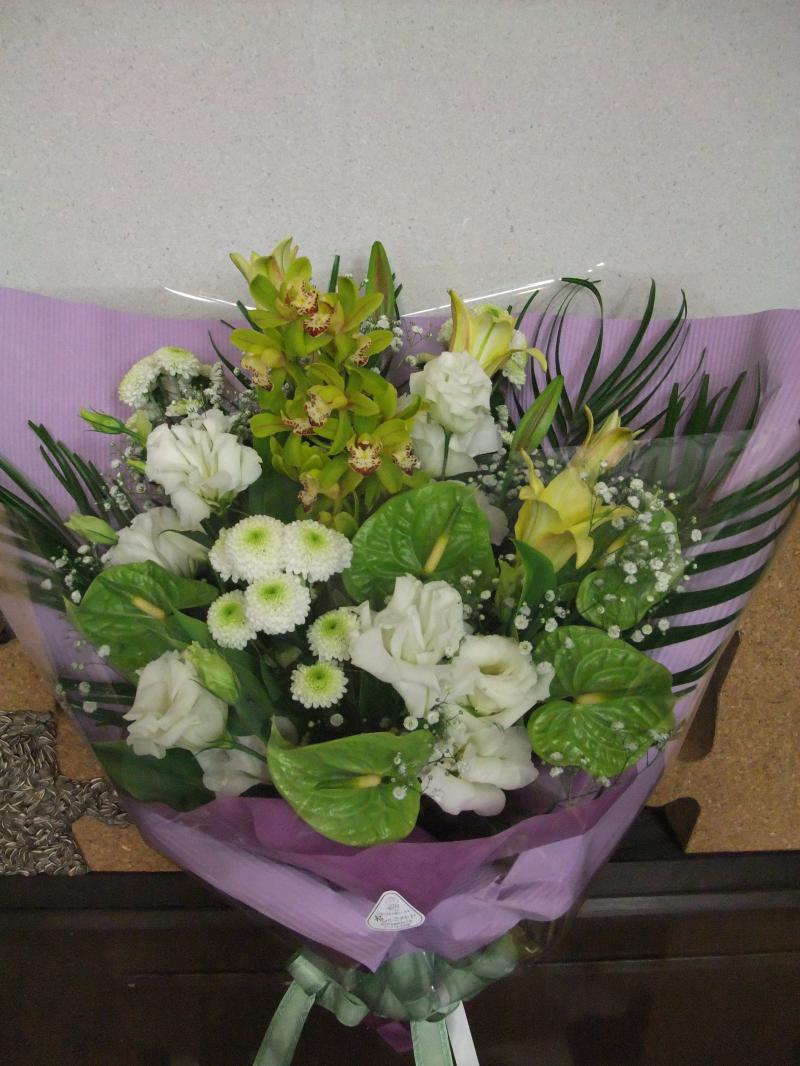 アンスリューム、スプレーキク、カスミ草、フェニックスです